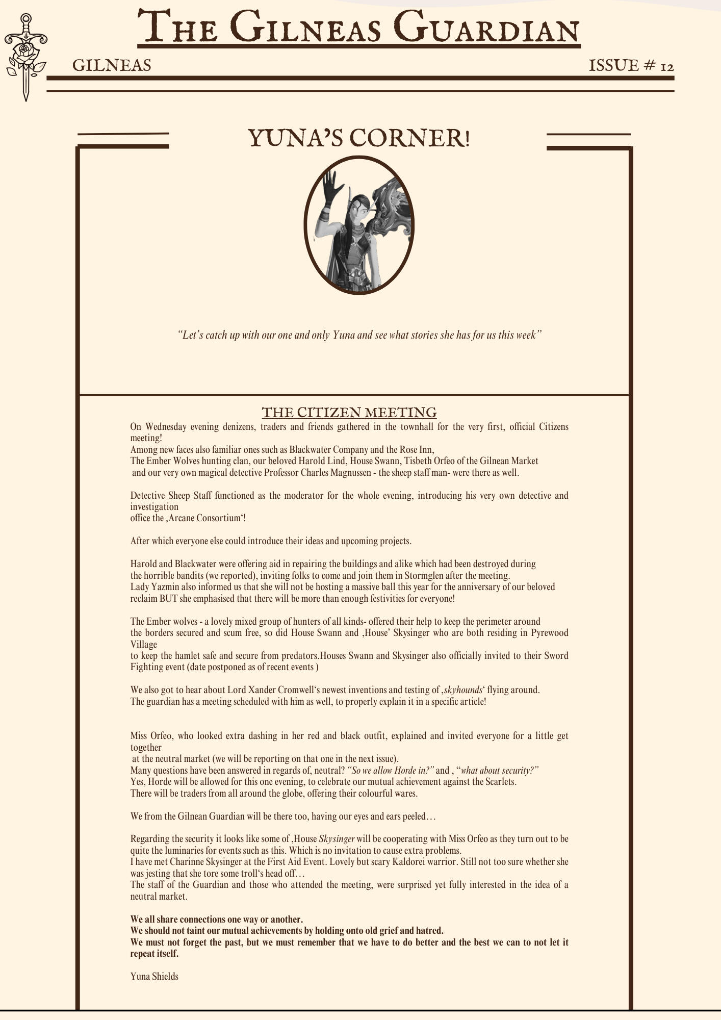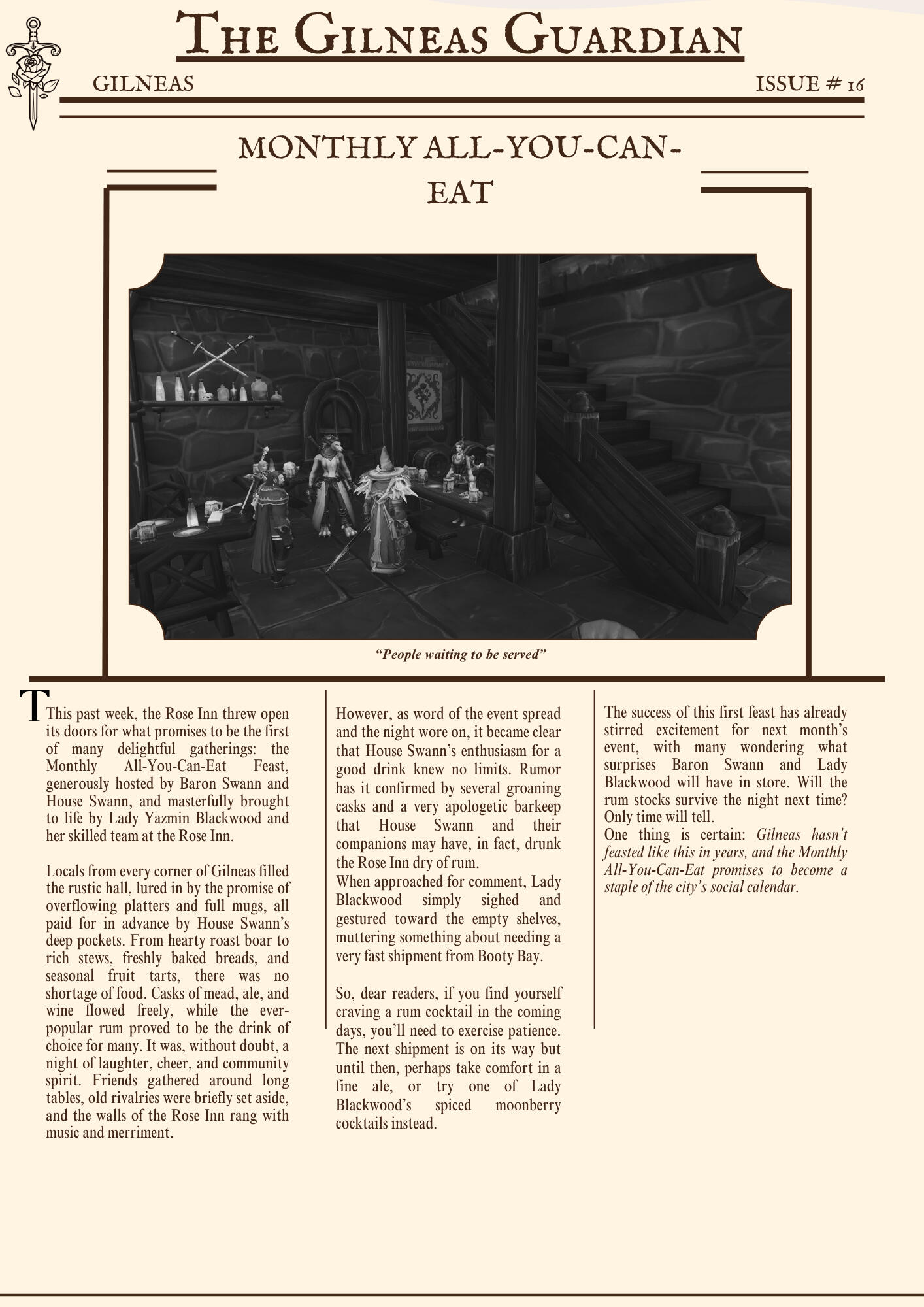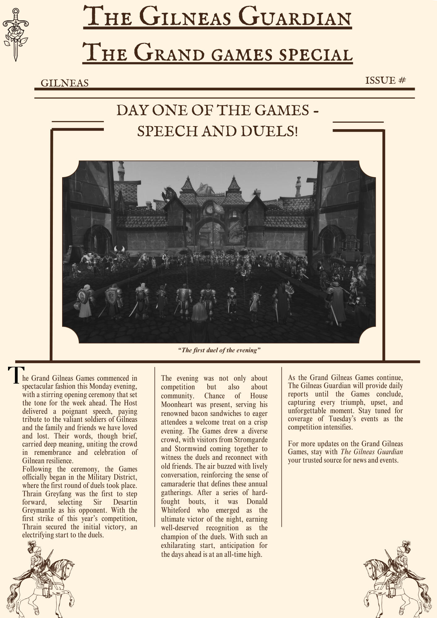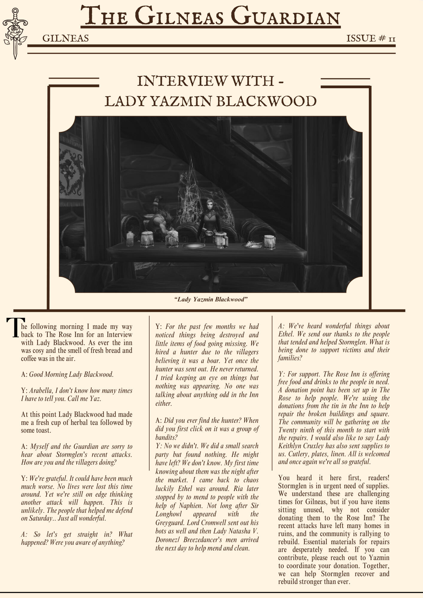 The Gilneas Guardian is dedicated to delivering truthful news and reporting on events in and around the city of Gilneas. Our mission is to keep citizens informed about the latest developments, ensuring the community stays aware and engaged with the world around them.