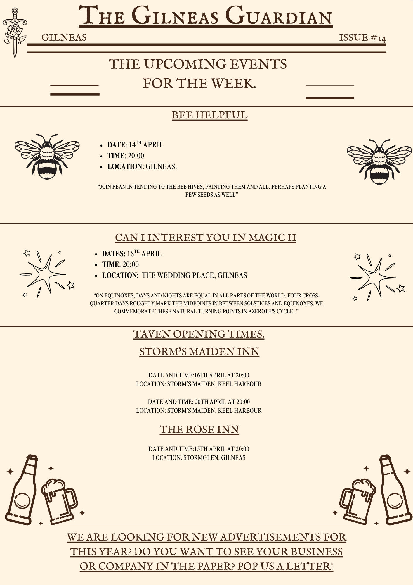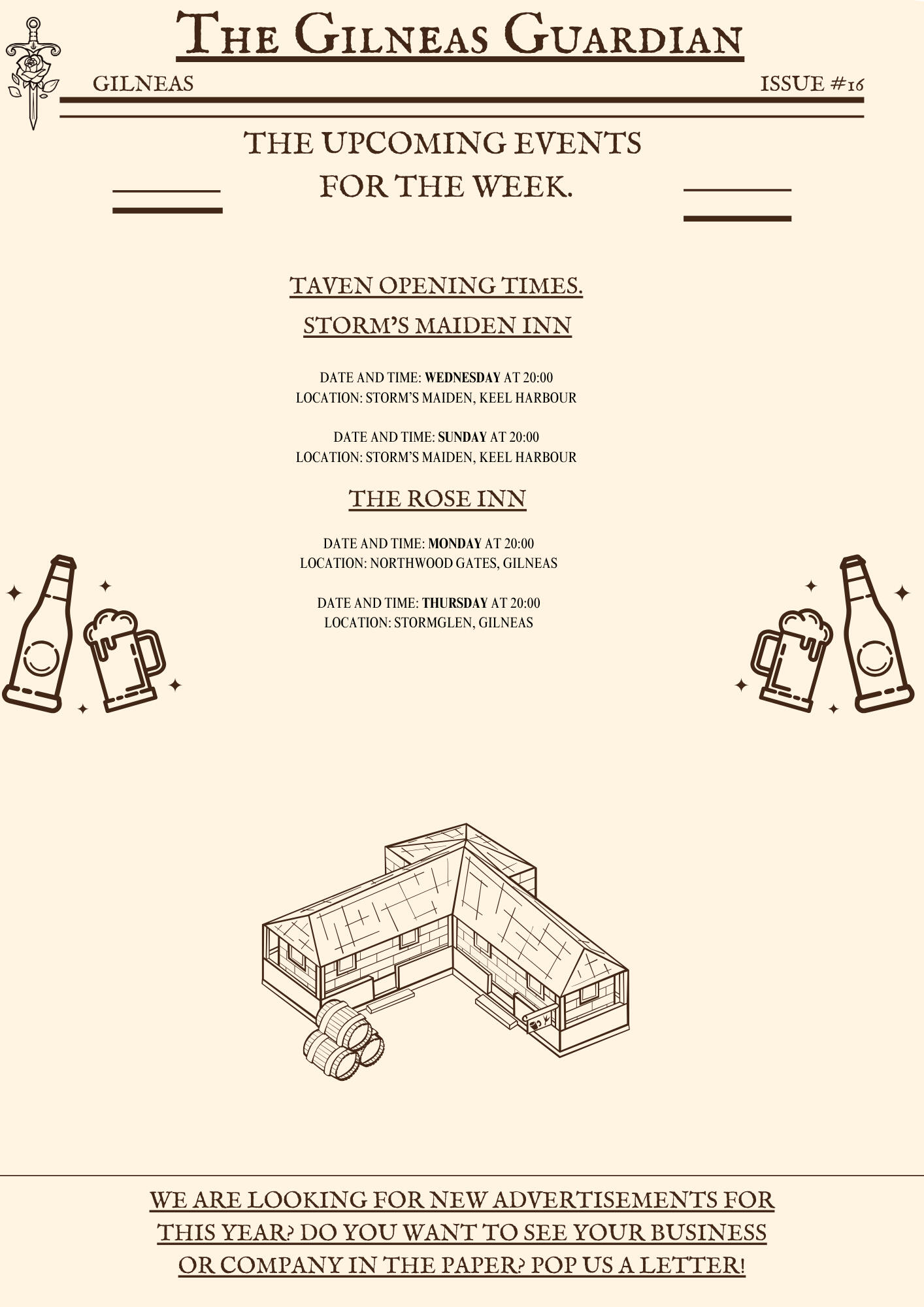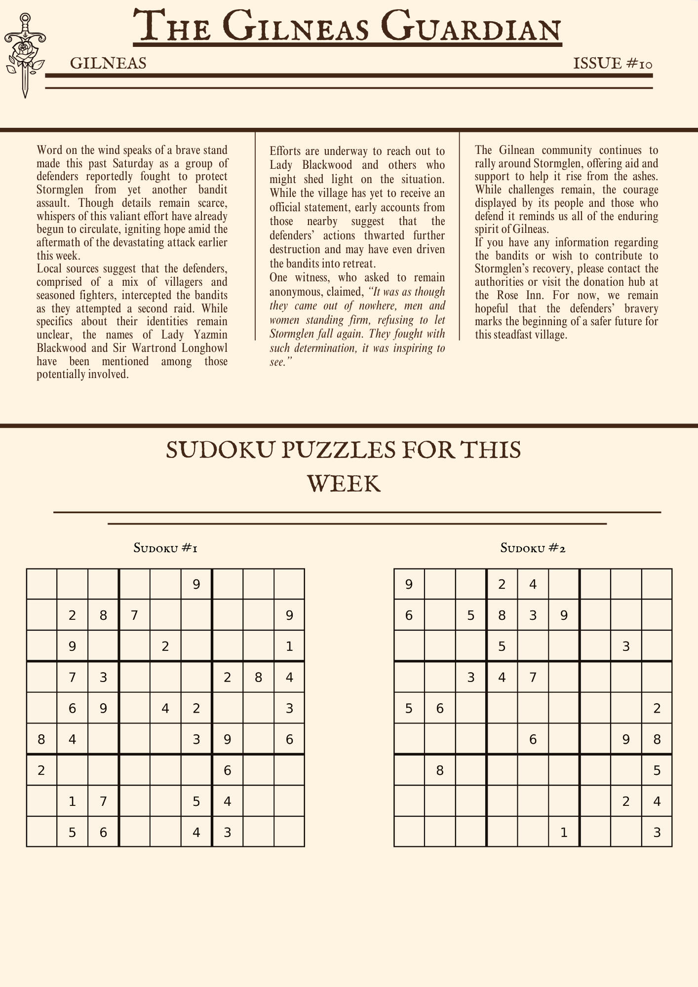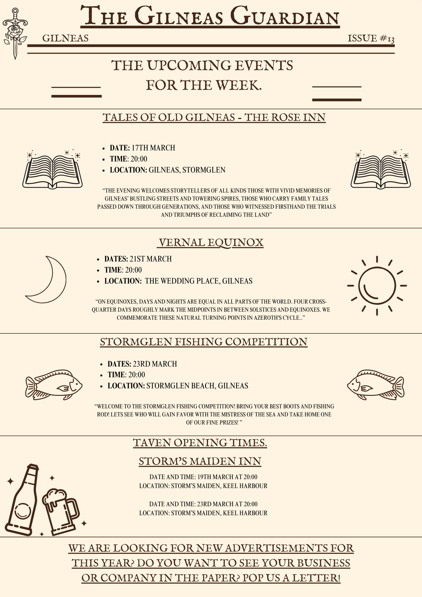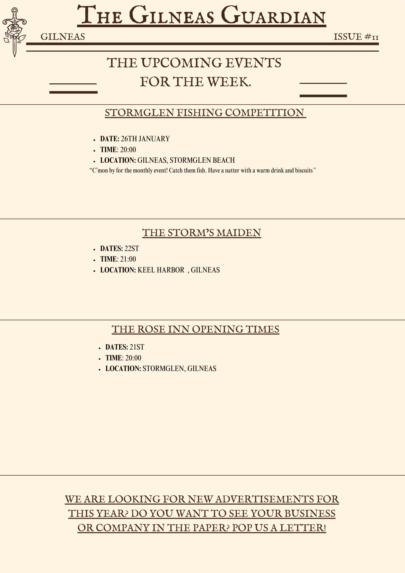 The Gilneas Guardian is dedicated to delivering truthful news and reporting on events in and around the city of Gilneas. Our mission is to keep citizens informed about the latest developments, ensuring the community stays aware and engaged with the world around them.