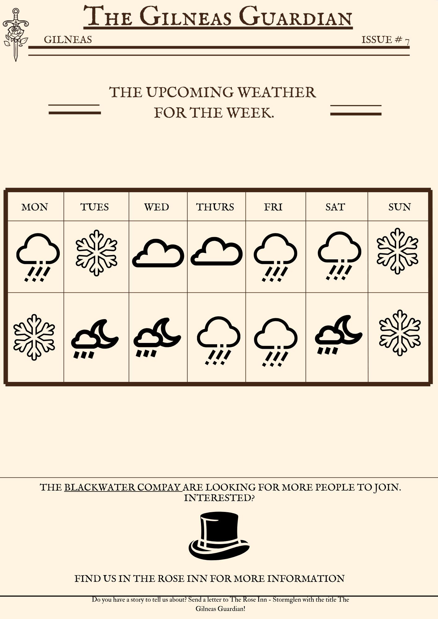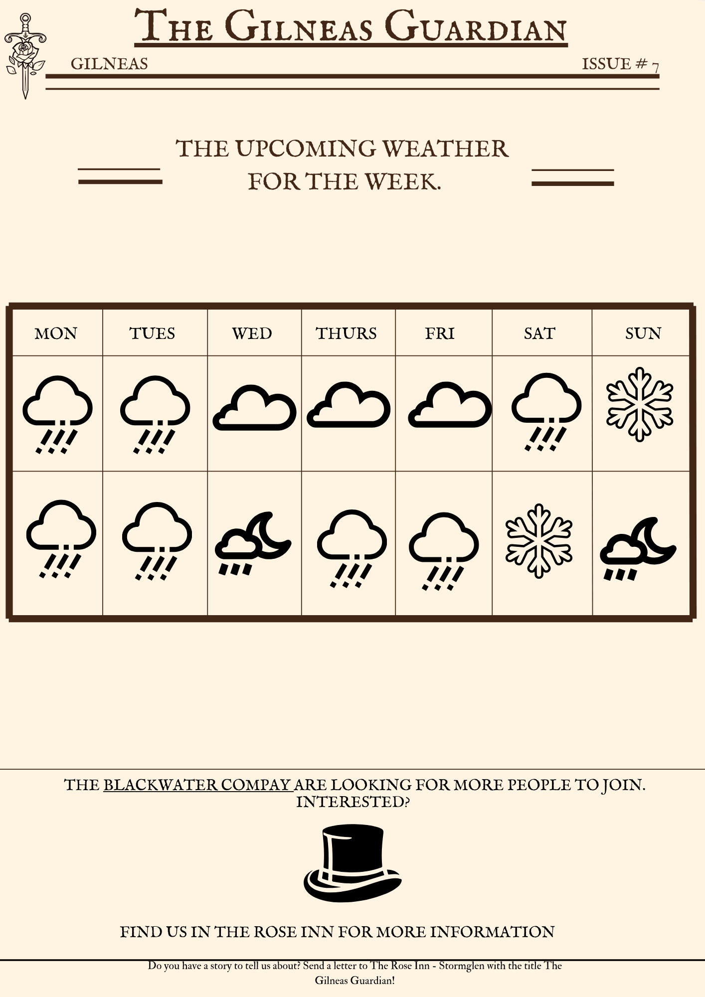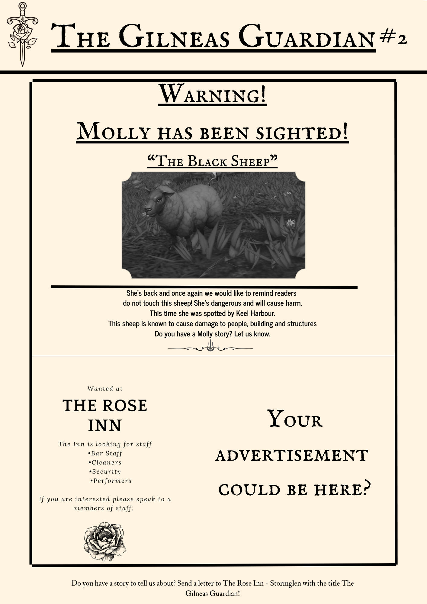 And last of all you can send letters to The Rose Inn in Stormglen.